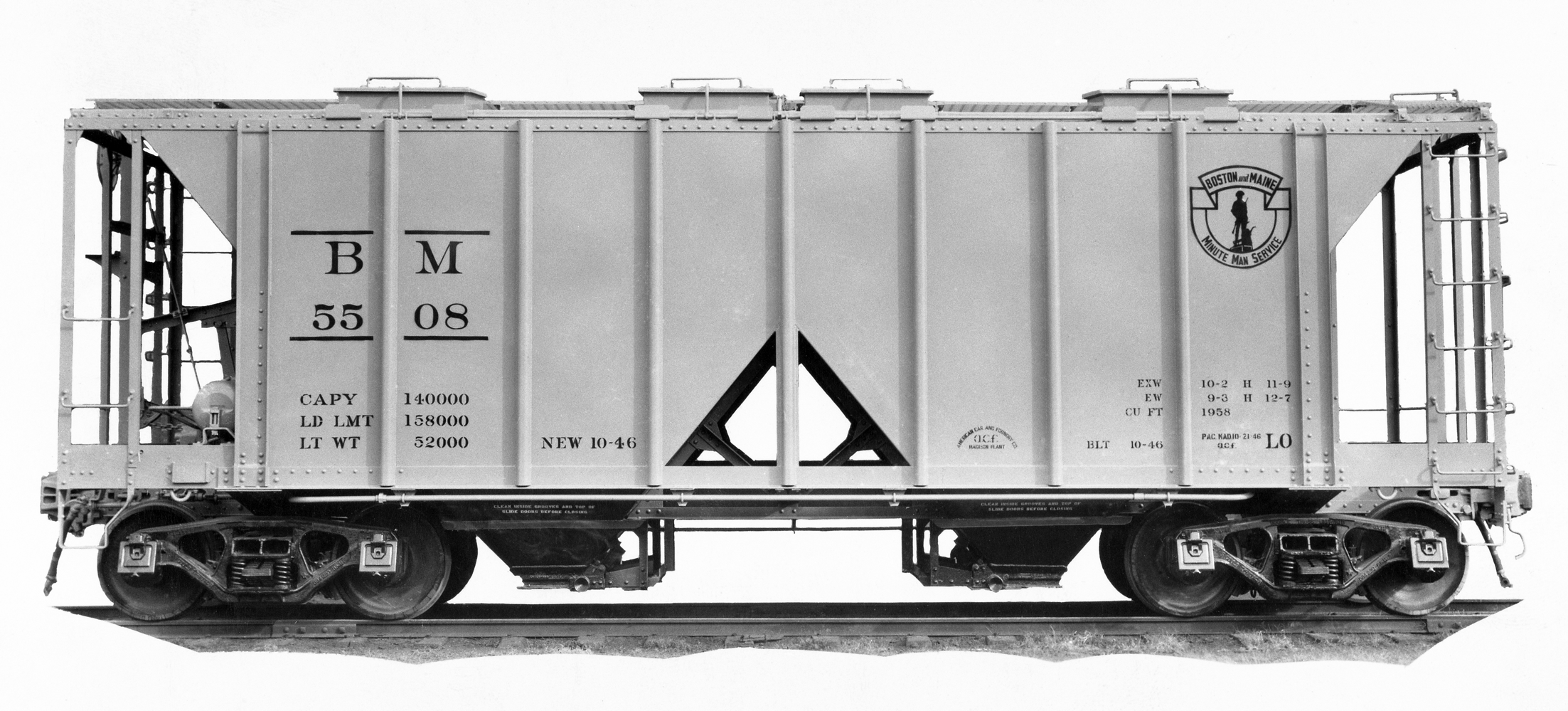 - Note the B&M car has the "large" triangular openings in the car sides (as opposed to "small" ones which were about 1/2 the size, or "solid" cars that lacked the triangular openings altogether)